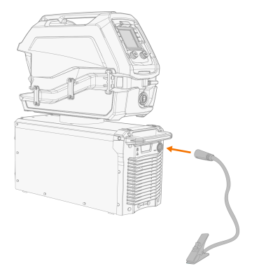 | 2. | Conecte o suporte do eletrodo diretamente ao conector de soldagem (+) na parte traseira da fonte de alimentação. |