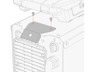 >>如果送丝机安装在电源顶部,则可以将连接的电缆夹固定在电源上的可选支撑支架上(使用提供的螺母):