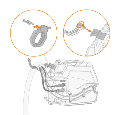 | 5. | 压缩弹簧紧固件以将软管接头固定到位。释放后,确保弹簧紧固件锁定到软管接头凹槽中的位置。 |