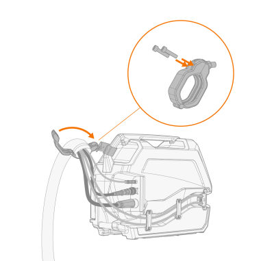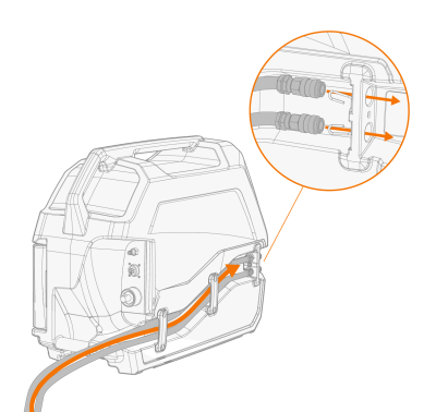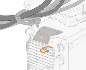>>5 米及更长的电缆:要固定送丝机中继线的送丝机端,请将额外的支撑支架放在送丝机的后手柄周围,并将电缆夹固定在其上(使用提供的螺母)。