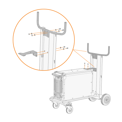X3T4 推车是用于 X3 FastMig 的可选 4 轮推车,带有气瓶架。