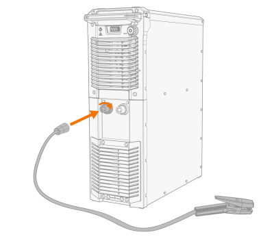 Maadoituskaapeli kytketään virtalähteen DIX-liittimeen. Kaapeli kytketään joko virtalähteen plus- (+) tai miinusliittimeen (-), työstettävästä metallista riippuen. Kaapelisuositukset on lueteltu edellisessä taulukossa.