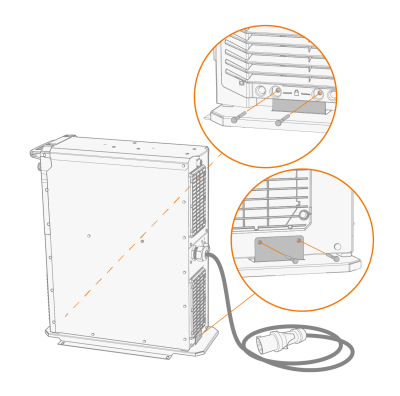 | 2. | Fäst strömkällan på bottenplattan med de medföljande skruvarna (2 x M5x12 skruvar på framsidan, 2 x M5x12 skruvar på baksidan). |