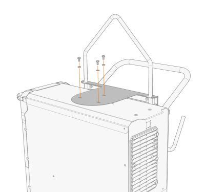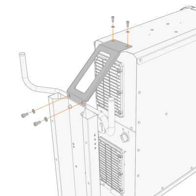 | 2. | Fäst strömkällan på vagnen med den övre stödplattan. Fäst plattan till strömkällan topp och vagnens bakre ram med de medföljande skruvarna (2 x M6x12 skruvar och brickor upptill, 2 x M8x16 skruvar och brickor på baksidan). |
