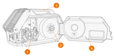Țineți capacele alimentatorului de sârmă închise în timpul sudării pentru a reduce riscul de vătămare sau șoc electric. Păstrați capacele închise și în restul timpului pentru a menține interiorul alimentatorului de sârmă curat. |