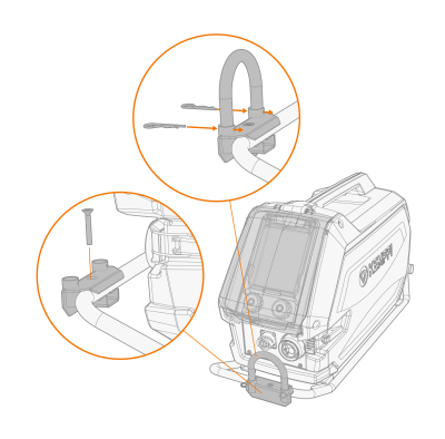 Cârligul alimentatorului de sârmă pentru braț facilitează sudarea acolo unde este dificil să aduceți întregul sistem de sudare X5 FastMig.