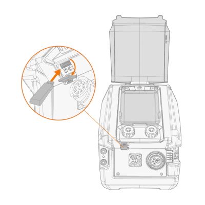 | 3. | Conectați stick-ul de memorie USB la panoul de control al dispozitivului X5 urmând același principiu ca în cazul actualizărilor software-ului (capitolul anterior) și instrucțiunile de pe ecran. |
