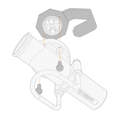 | 1. | 将焊枪手柄支架与带齿的中心轮毂连接,然后用螺钉拧到送丝机上。 |