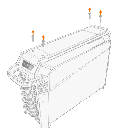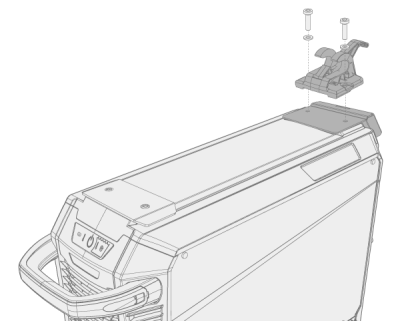 | 3. | 将后固定板和送丝机锁定机构放置在电源上。用随锁定机构一起提供的两个螺钉 (M6x40) 将它们固定到位。 |