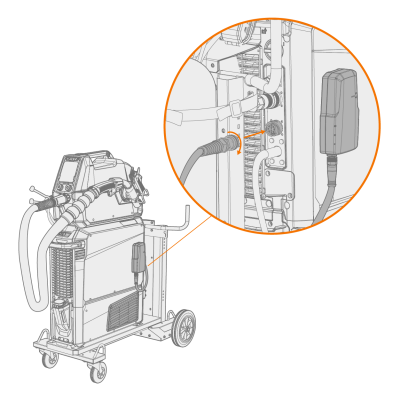 X5 FastMig 配有 X5 APC 送丝机,内置 WeldEye 连接选件(更多信息请参阅 WeldEye)。