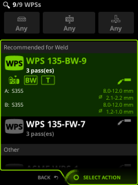 When you use Control Pad to select a work order or a weld that has recommended WPSs, Control Pad shows a list of recommended WPSs and prompts you to select one of them.