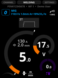MIG es un proceso de soldadura MIG/MAG convencional con 2 mandos que permite ajustar la velocidad de alimentación del alambre y el voltaje de manera independiente. MIG no es compatible con las funciones Wise.