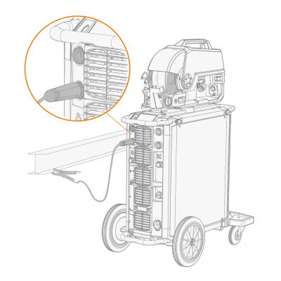 X8 MIG Welder mide el voltaje del arco de soldadura y la pérdida de voltaje en el cable de interconexión y la pistola de soldar. Tras la calibración, la fuente de potencia calcula el voltaje del arco cuando el cable sensor de voltaje no está conectado.
