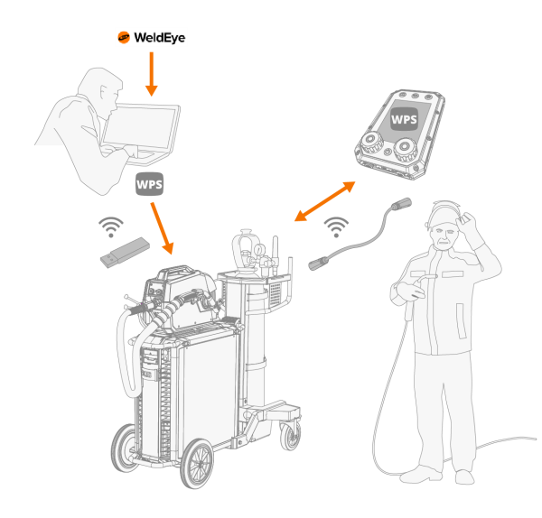 El servicio en la nube WeldEye de Kemppi proporciona herramientas para la creación y edición de EPS. Cuando el sistema de soldadura está conectado a WeldEye, las dEPS se transfieren automáticamente a la memoria de la fuente de potencia de todas las soldadoras conectadas a WeldEye. Si no hay ninguna conexión a Internet disponible, es posible transferir las dEPS a una memoria USB. A continuación, el usuario podrá ver, activar y seleccionar la dEPS con Control Pad. También puede seleccionar la dEPS a través de la pantalla del alimentador de alambre o el control remoto de la pistola para soldar.