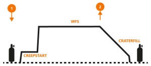 | • | Tempo: para 2T, isso define a duração da sequência de Enchimento de cratera. Para 4T/WP Switch, isto define o período que leva para se mover do nível inicial para o nível final. |
