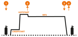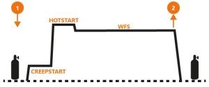 Quando a lógica de disparo 4T ou WP Switch estão em uso, a Partida a quente começa quando o gatilho é pressionado e dura até que o gatilho seja liberado.