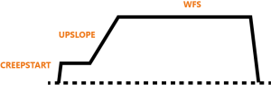 A função UpSlope aumenta gradualmente a potência de soldagem/velocidade de alimentação de arame até o nível desejado. O usuário configura liga/desliga a função e configura o valor inicial da potência/velocidade de alimentação de arame do UpSlope.
