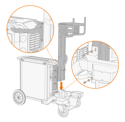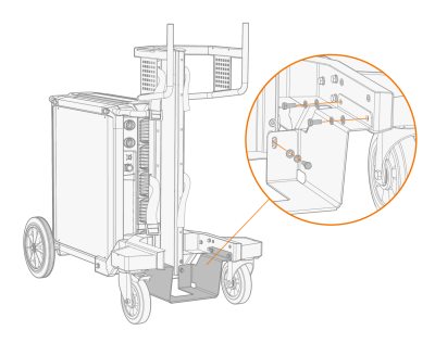 >>要想让前后都有转动轮,请将前轮组件安装到设备前部。欲了解更多详细内容,请参见 安装轮子。