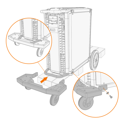 | 4. | 连接好车轮后,提起电源使其脱离托盘。 |