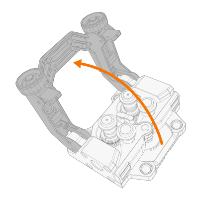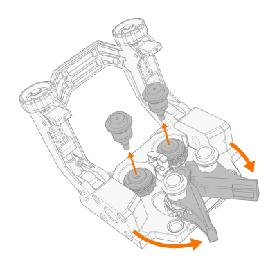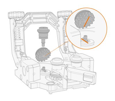 重新连接安装销,将驱动轮和压轮锁定到位。将压轮安装销底部的一个切口与底座上的螺栓对齐。 |