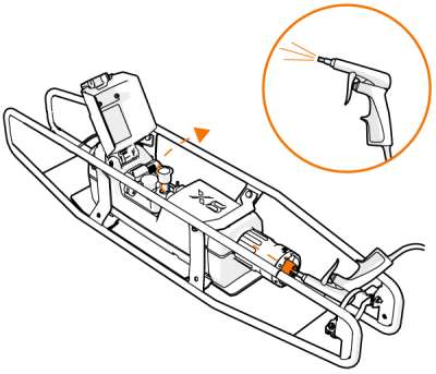 Clean system with dry compressed air during at least every fifth wire spool change. Keep the subfeeder cover open during the cleaning process. |