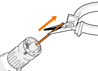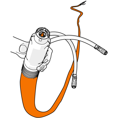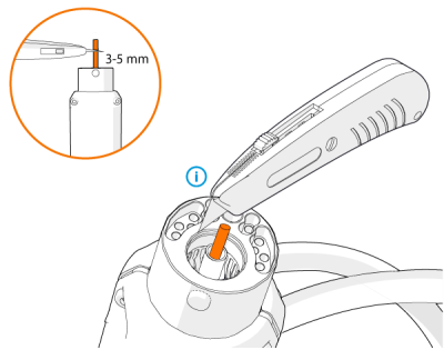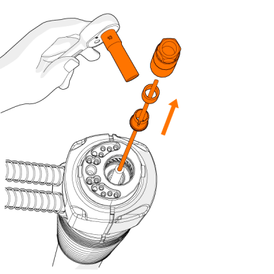 Użyj właściwej tulei do danej prowadnicy drutu. Tuleja dla prowadnicy pomarańczowej (DL Chili) jest inna niż dla zielonej (stalowa tuleja spiralna). |