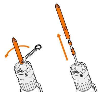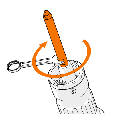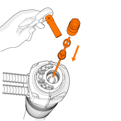 | 3. | Wsuń długą tuleję prowadnicy wraz z pierścieniem wewnętrznym i uszczelnieniem na końcu prowadnicy. |