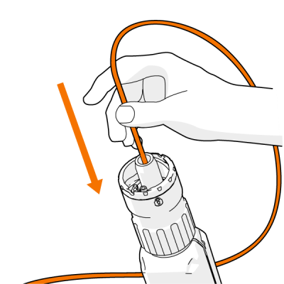 | 4. | Wsuń resztę prowadnicy w przewód wraz z długą tuleją. |