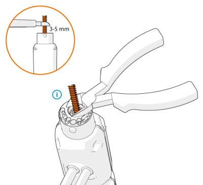 | 8. | Utnij nadmiar prowadnicy drutu po stronie podajnika pośredniego, tak aby na końcu wystawało 3–5 mm. |